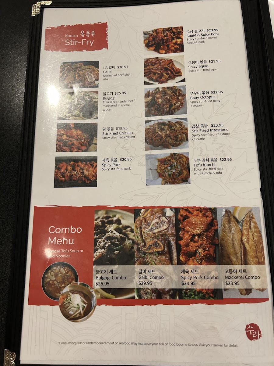Very good Korean food. Friendly, fast efficient staff. Has the home feel of a family restaurant. True the food is not in keeping with authentic spicy Korean food, but they need to appeal to the local taste. Update, I just took a trip to Korea and ate at several places, still love Soora best! Sunk cost wait scale- worth a 30minute wait