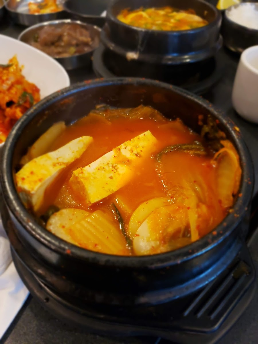 First time here They family wanted korean food so korean it is Clean spaces seating Friendly staff Our Waitess was super friendly For appetizers, we ordered tokoyaki and croquette. It came out hot freash delicious For the main course, we sobs noodles soup Tofu and seafood soup and jokbal ( pork Trotter) Everything came out hot fresh delicious Got some bibimbap korean fried rice to go The place is not too big or small just perfect for some delicious korean food Give this place a try if you're in the area